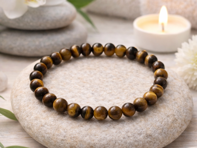Oeil de tigre 8 mm. Ce bracelet protège des ondes négatives et redonne force et courage. Réduit le stress et soulage les douleurs articulaires. Favorise une meilleure digestion.